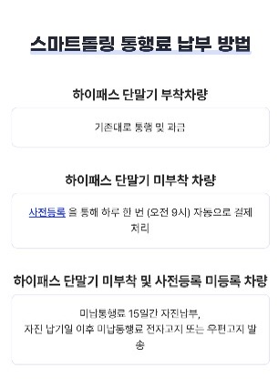 스마트톨링은 교통 흐름 개선이라는 큰 장점을 가지고 있으며, 초기 적응 기간이 지나면 모든 이용자에게 더 편리한 서비스로 자리 잡을 것으로 기대됩니다.