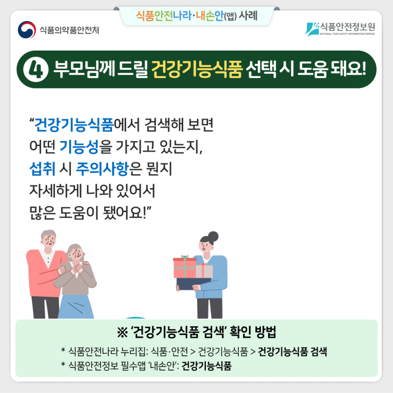 '내손안'은 식품안전나라의 모바일 버전으로, 더욱 편리한 식품안전 정보 확인이 가능한 앱입니다.