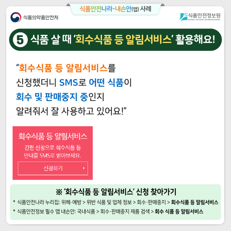 회수식품 알림 서비스 신청 방법