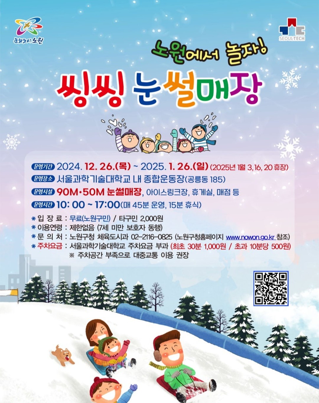 서울 '2025 노원 눈썰매장' 운영 기간, 장소, 시설, 시간, 주차, 입장료 총정리