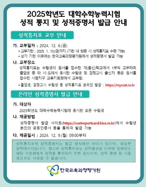 2025 수능 채점 결과 점수 발표 등급컷 원점수 확인, 성적증명서 발급 방법